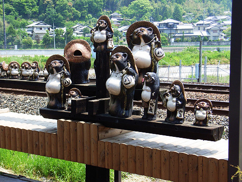 站台外可看到大大小小的可愛吉祥物招財狸...(怪了吧~原來會招財的不只有貓~~~)