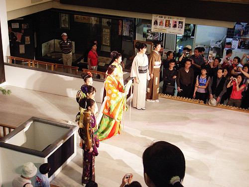 沒看到渡月橋,就是為了趕往西陣織會館看一場和服秀,因為有固定的演出時間,聽說這裡的織布技術滿有名的,而布料摸起來確實不太一樣!