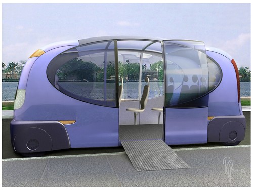 想像一下,當我們想要外出的時候,只要一通電話,最近的無人公車即會開到家門口,接你快速安全的到達目的地!沒錯英國正有一群人在研究這個計畫,利用衛星導航,智慧巡航系統,配合道路上的磁力設施,能夠正確的把乘客送到定點!